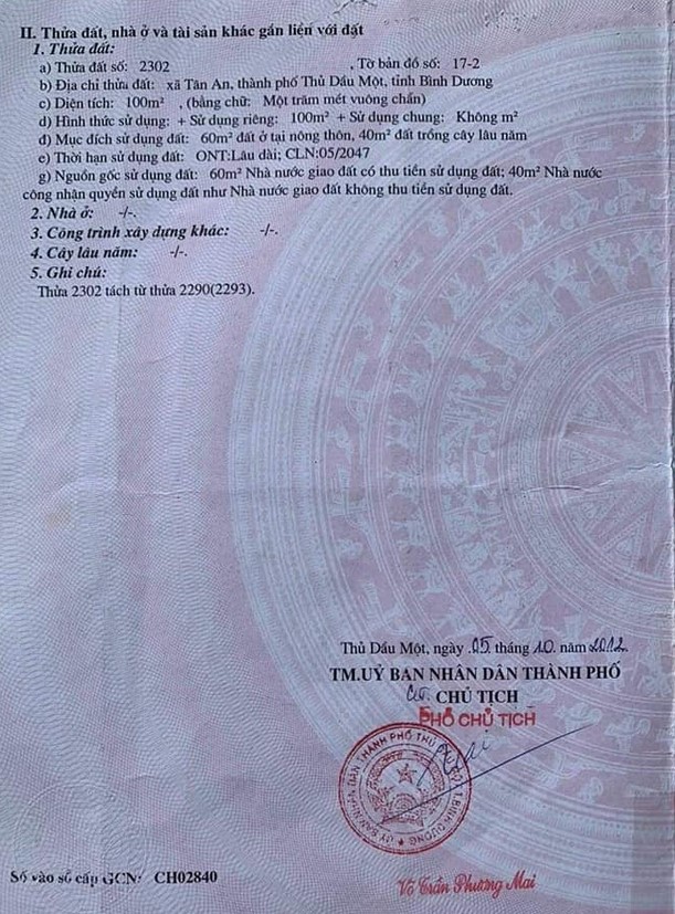 Đất nền tại phường Tân An, thành phố Thủ Dầu Một, Bình Dương, ngay sát công an phường, đảm bảo an ninh tuyệt đối. Lô đất có vị trí đắc địa, thuận tiện xây dựng nhà vườn hoặc đầu tư sinh lời cao.